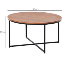 HOMCOM Couchtisch Rund In Holzoptik, Kaffeetisch, Metallbeine, Spanplatte, Braun, Ø80 X H45 Cm