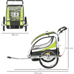 HOMCOM Kinderanhänger Fahrradanhänger Für 2 Kinder Mit Universalkupplung 155 X 88 X 108cm Grün