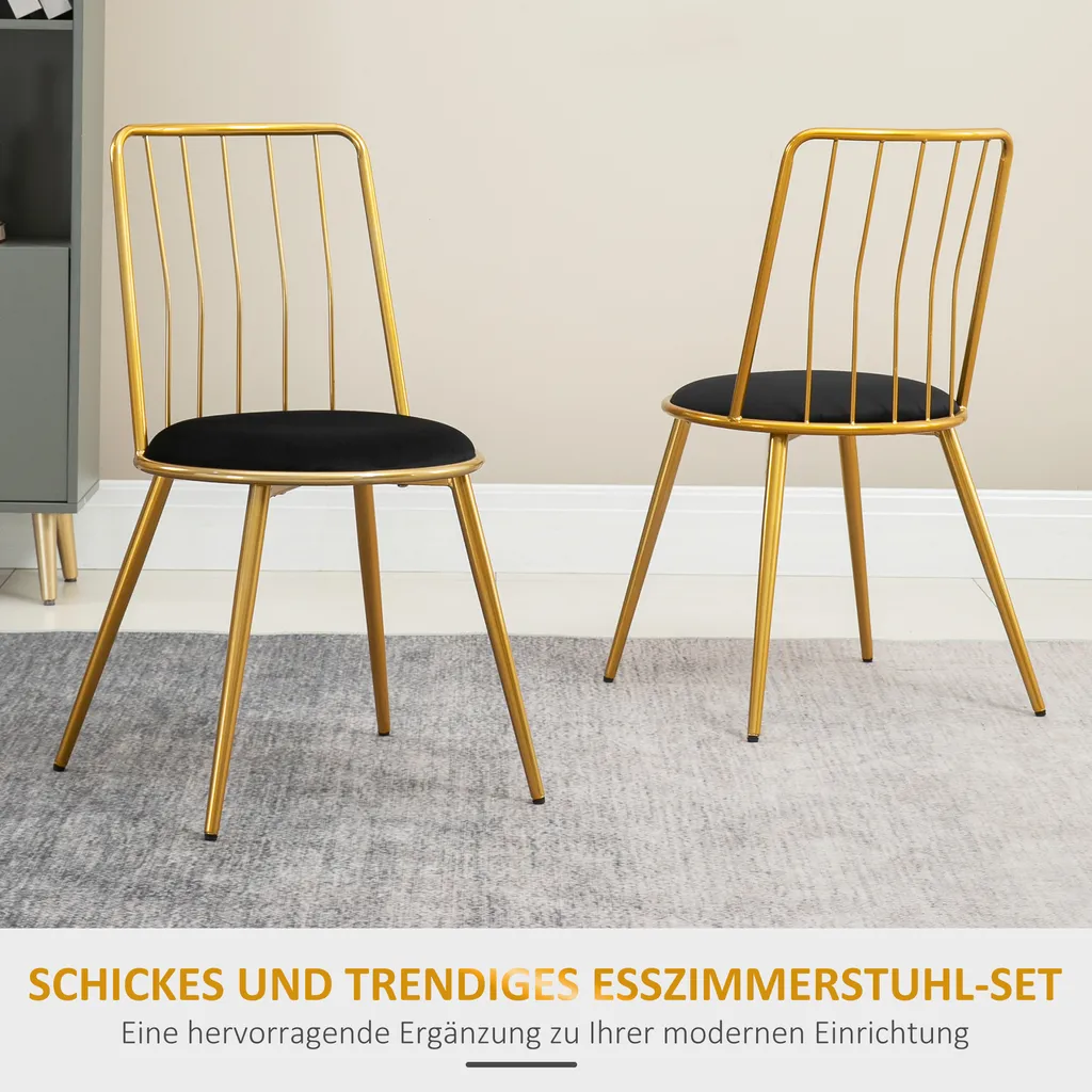 Der erhaben-schwarze Esszimmersessel wird durch einen golden anmutenden Metallrahmen umfasst, was Ihrem Interieur einen geschmackvollen Vintage-Touch verleiht.