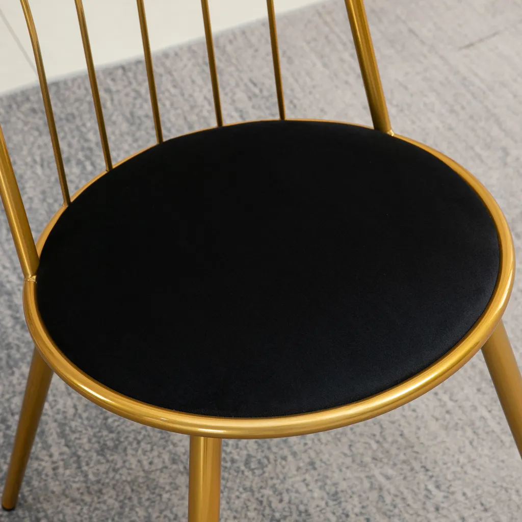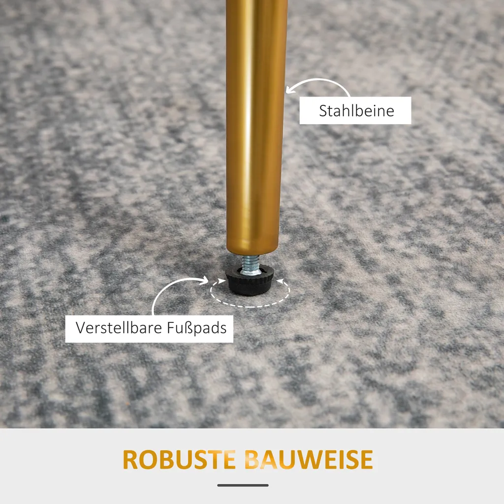 Der Sitzbezug ist weich und mit seiner Samtoptik besonders elegant. Frei von Armlehnen, bieten die Stühle Ihnen und Ihren Gästen reichlich Bewegungsfreiheit.