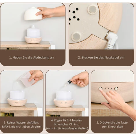 Dieser Aromadiffusor von HOMCOM verbessert die Raumluft und das Wohlbefinden. Ein zarter Sprühnebel verströmt einen angenehmen Duft. Sie können zwischen zwei Modi wählen. 7 LED-Lichter sorgen für eine stimmungsvolle Atmosphäre. Dank eines Timers können sie die Betriebsdauer steuern. Eine Auto-Stopp-Funktion garantiert mehr Sicherheit bei der Verwendung. Dieser Aroma-Diffusor von HOMCOM verwandelt ihr Zuhause in eine Wohlfühloase.