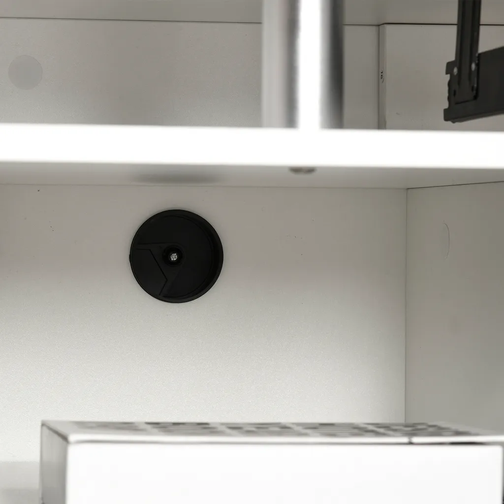 – Durch 2 Löcher in der Rückwand sind Kabel nicht sichtbar