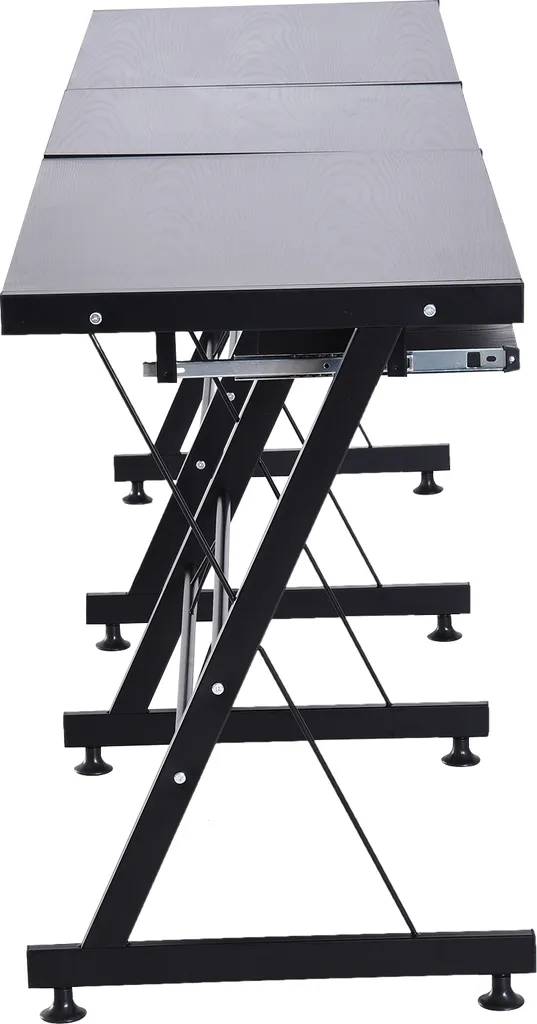 Mit seinem pulverbeschichteten Stahlgestell und der wasserabweisenden Tischplatte aus MDF ist dieser Computertisch pflegeleicht und stabil. Dank der individuell verstellbaren Füße steht er auch auf unebenen Böden sicher.