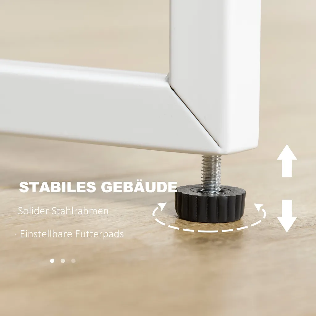 Dieser Schreibtisch ist aus einem Stahlrahmen und einem soliden Holzspanwerkstoff gefertigt und daher stabil und zuverlässig im täglichen Gebrauch. Vier verstellbare Fußstützen halten den Tisch bieten einen stabilen Stand auf unebenen Boden.