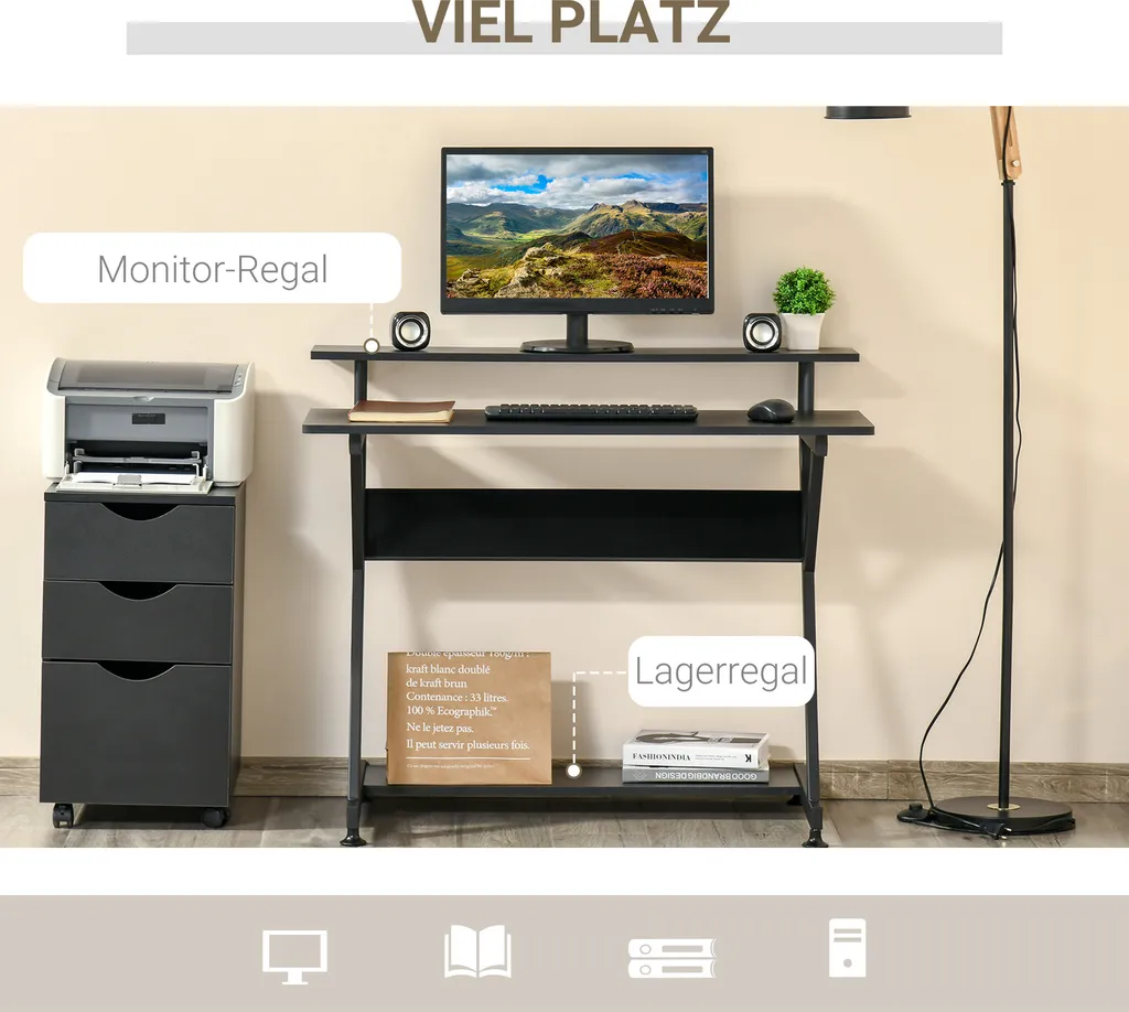 – Inklusive oberer Monitorablage und unterer Ablagefläche