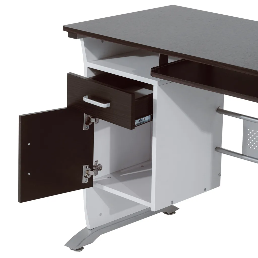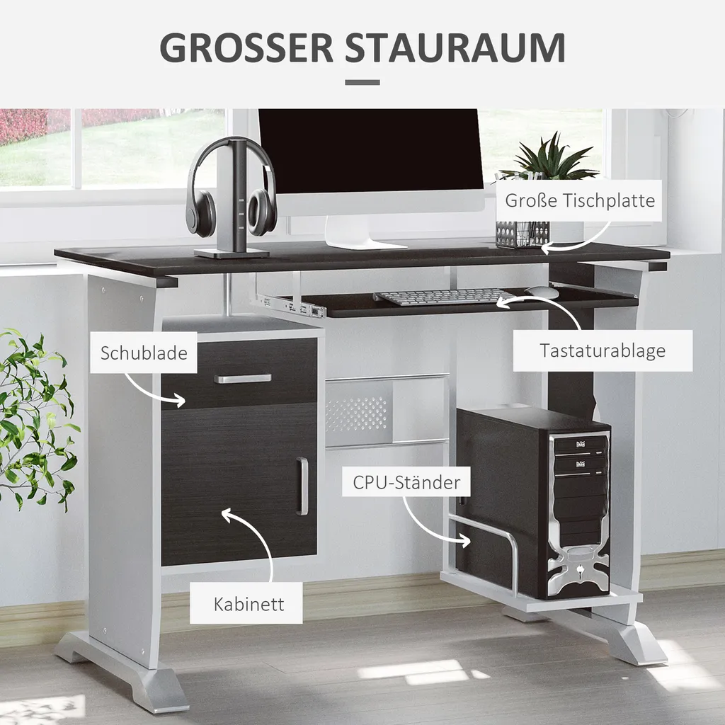 Dieser Computertisch mit verschiebbarer Tastaturablage, Schubladen und CPU-Rack bietet genügend Stauraum für Papiere, Bücher, Stifte, Akten, Notizbücher, Dokumente.