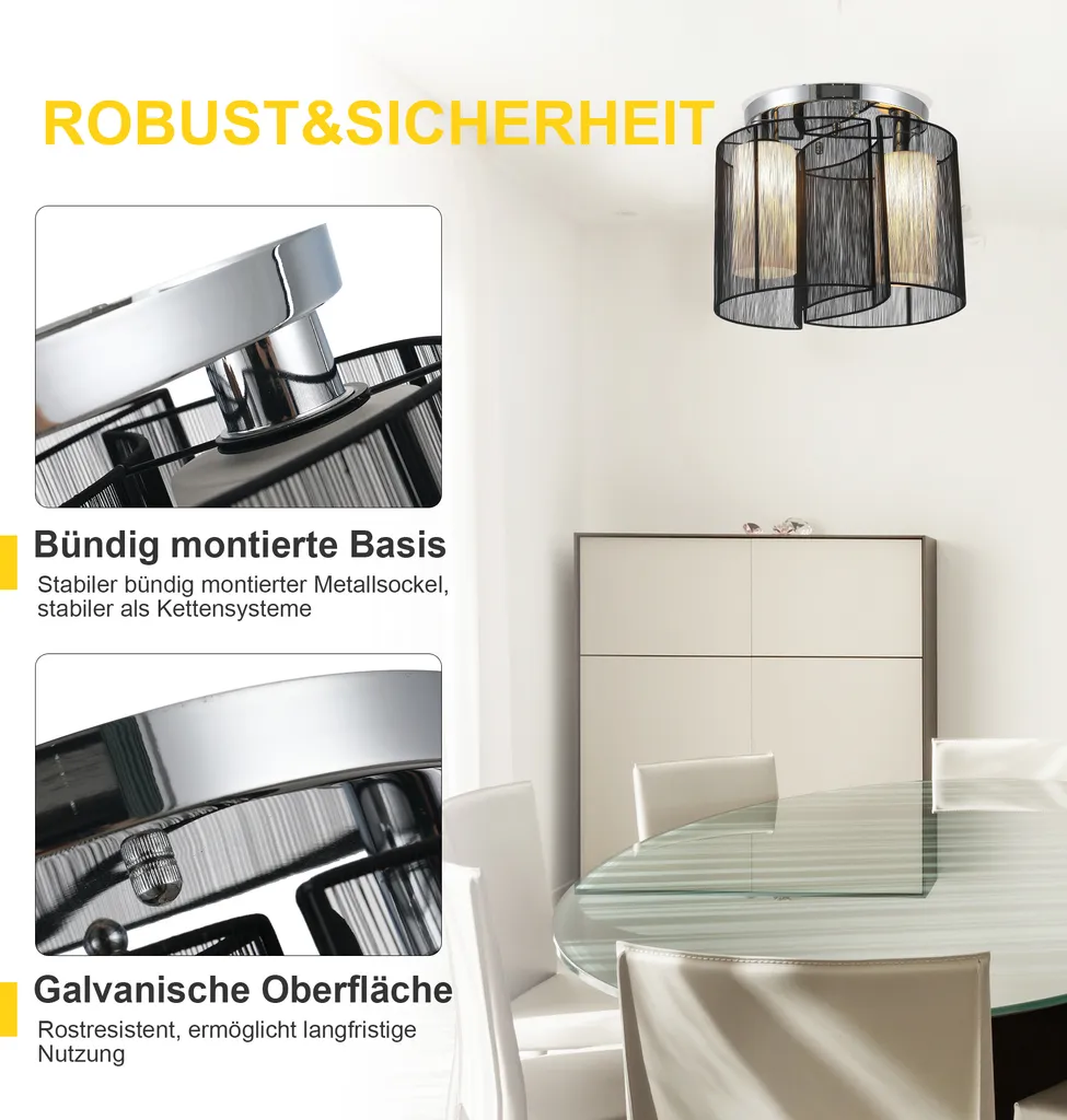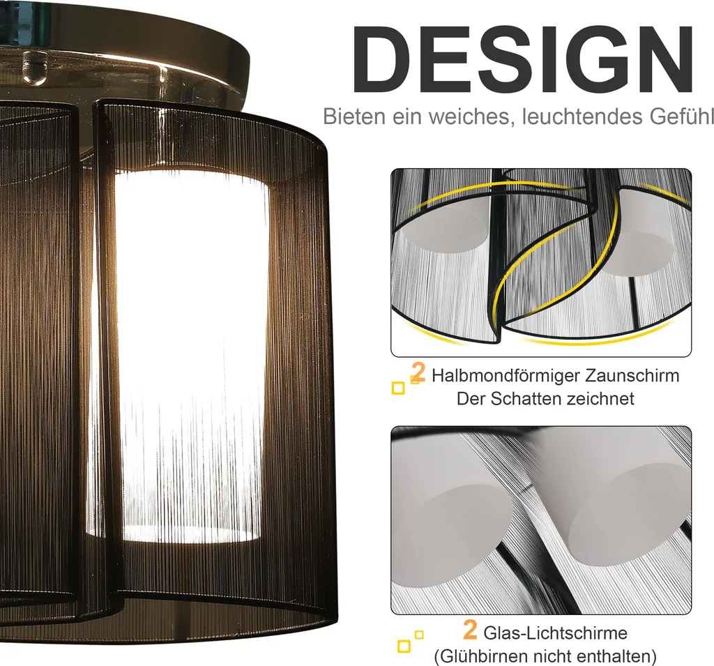 All-Match-Deckenleuchte mit 2 x E27-Lichtquelle mit maximaler Leistung von 40W, bietet eine große Beleuchtungsfläche. Beste Wahl für Wohnzimmer, Schlafzimmer, Wartezimmer, Rezeption, Flur, Cafe und Hotel.