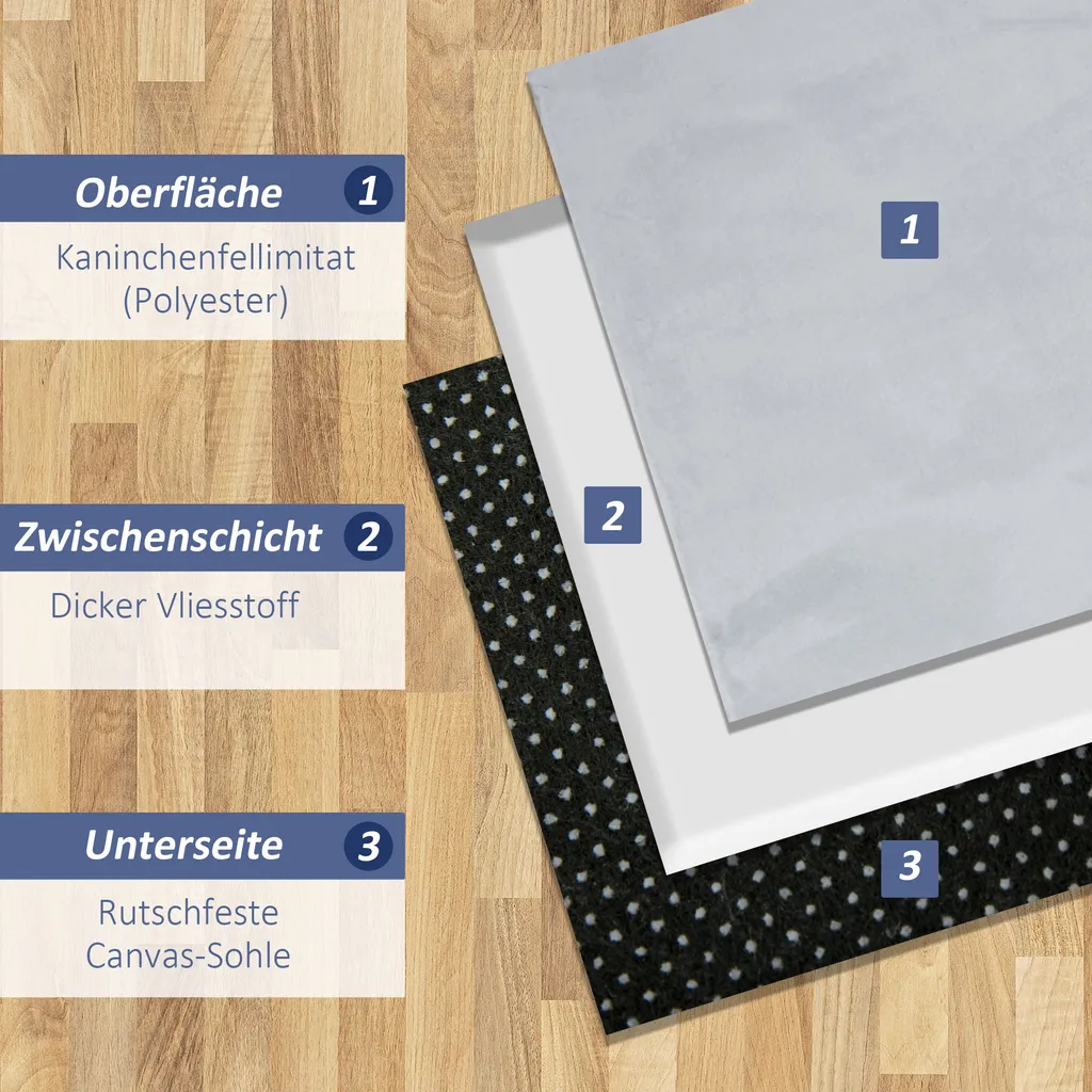 – Material: Kaninchenfellimitat (Polyester), Vliesstoff (Polyester);