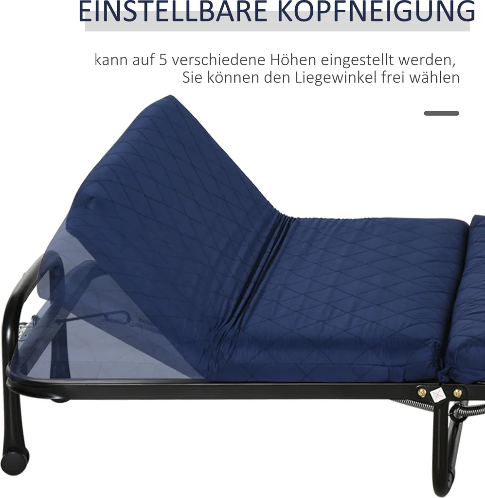 Dieses HOMCOM-Faltbett überwindet die Unzulänglichkeiten traditioneller Matratzen, die groß und nicht leicht zu lagern sind. Wenn es nicht wird, lässt es sich leicht zusammenklappen und platzsparend in der Ecke Ihres Zimmers aufstellen. Wenn ein Gast zu Ihnen nach Hause kommt, nehmen Sie es einfach heraus, es wird ein ideales Zusatzbett sein.