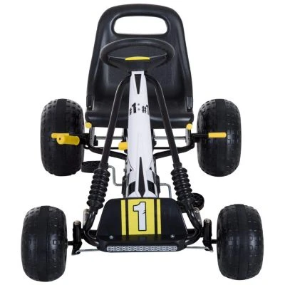 Beschleunigen, enge Kurven nehmen und auch über Gras und Sand flitzen. Bei unserem Kinder Gokart wird Fahrspaß großgeschrieben. Das schnittige Racing-Design Ihres Tretautos macht Lust auf Draußen, so ist stundenlanger Fahr- und Spielspaß garantiert. Und das schon ab 3 Jahren. Dabei sind Ihre Kinder flott unterwegs. In die Pedale treten und schon geht es geschwind voran. Vorwärts und rückwärts fahren ist gleichermaßen möglich. Für die Sicherheit ist dabei ebenfalls gesorgt. Der Kettenantrieb ist gefahrlos unter einem Schutzblech verborgen, gebremst wird mittels Handbremse. So kommt Ihr Kind auch bei voller Fahrt sicher zum Stehen. Für Komfort und Halt sorgt der ergonomische Sitz. Er ist flexibel nach vorne oder hinten einstellbar, sodass Ihre Nachwuchsrennfahrer immer bequem sitzen.