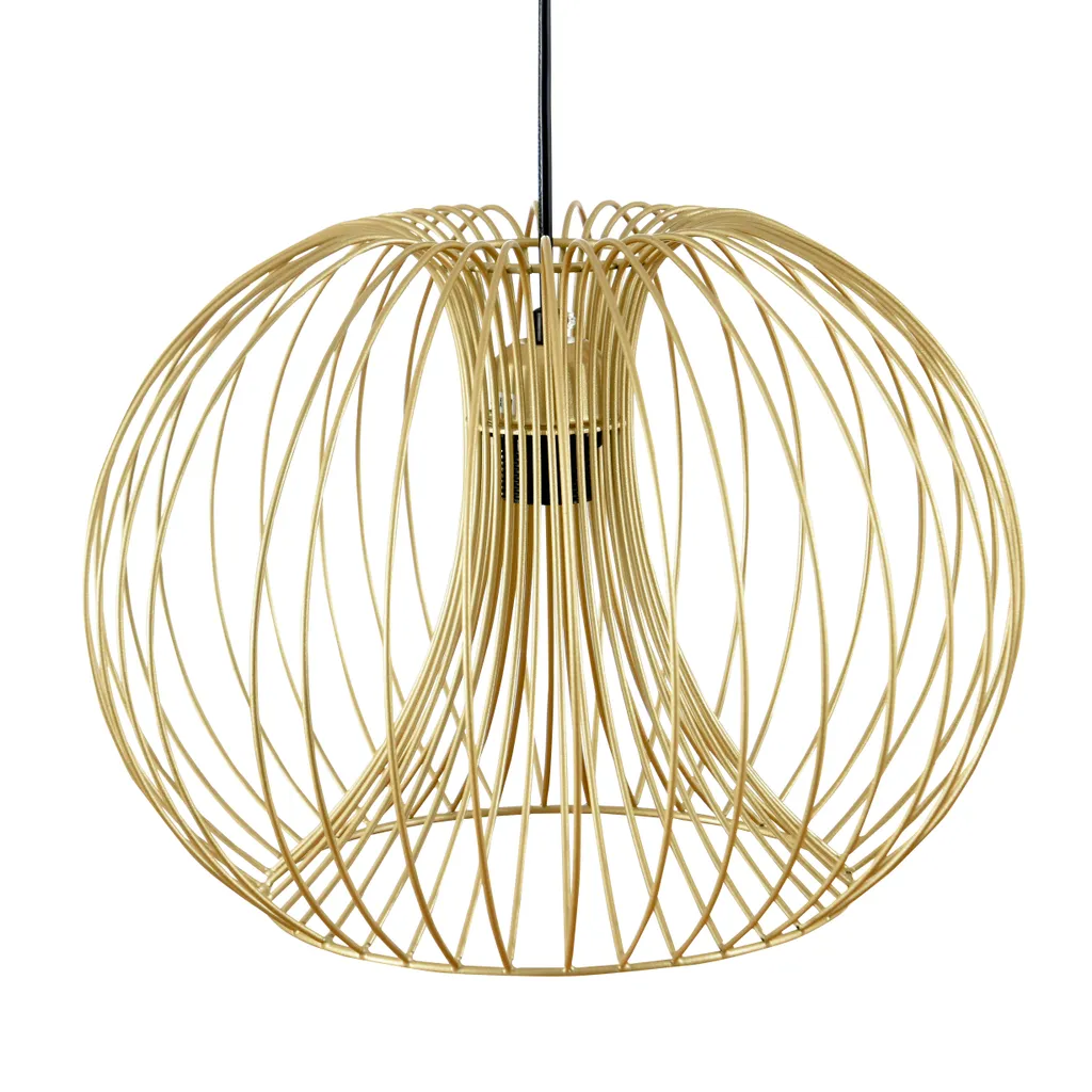 · Sphärischer moderner Hängeleuchte mit goldenem gebogenem Stahlrahmen und trompetenförmigem Kern