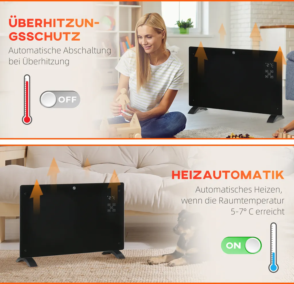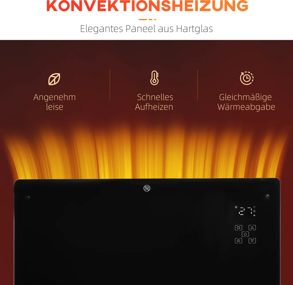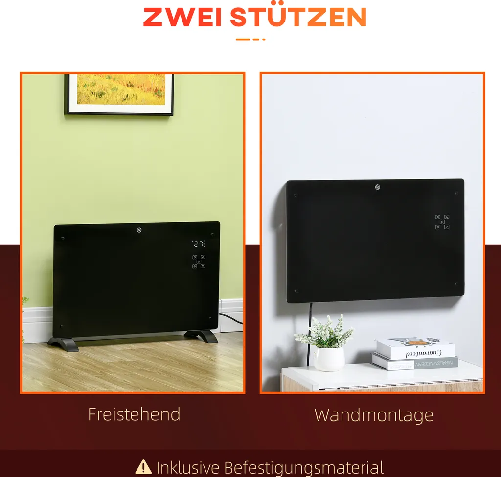 HOMCOM Heizlüfter Elektroheizung 1000/2000W Konvektor-Heizung Freistehend/ Wandmontage Mit Timer Leise Heizung Mit Fernbedienung Und LED-Display Kippschutz Für Raum 25 M² Schwarz 78 X 24 X 52cm