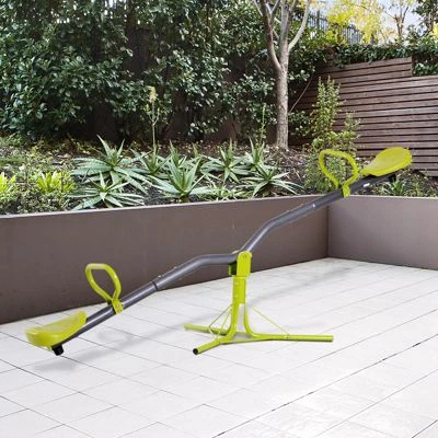 Schenken Sie Ihren Kleinen mit dieser Wippe viele Stunden Spaß. Es bewegt sich nicht nur wie eine herkömmliche Wippe auf und ab, sondern dreht sich auch um volle 360 Grad, was doppelt so viel Spaß beim Spielen macht. Der stabile Metallrahmen ist mit einer Pulverbeschichtung versehen und wurde für eine lange Lebensdauer konstruiert. Unter jedem Sitz befindet sich eine Anschlagstange für die Stoßdämpfung und die Sicherheit für Kinder zu gewährleisten. Mit den weichen Handgriffen macht es Ihrem Kind stundenlang Spaß und hilft ihm, sein Gleichgewicht und seine motorischen Fähigkeiten zu verbessern.