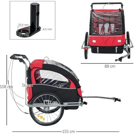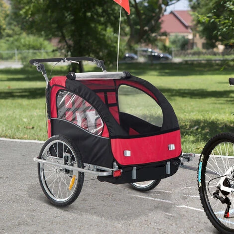 Bringen Sie Ihre Kinder immer sicher und wohlbehalten ans Ziel! Dieser großartige Fahrradanhänger bietet Platz für bis zu zwei Kleinkinder bis 9 kg. Dank seines stabilen Rahmens, der Reflektoren und des Fähnchens erleben Ihre Kleinen immer eine besonders sichere Fahrt. Die schützende, aufrollbare Abdeckung und das Fliegennetz schützen zudem vor Niederschlag und lästigen Insekten. Ausgestattet mit einer praktischen Universalkupplung, kann der Anhänger mit nahezu jedem Fahrrad gekuppelt werden.