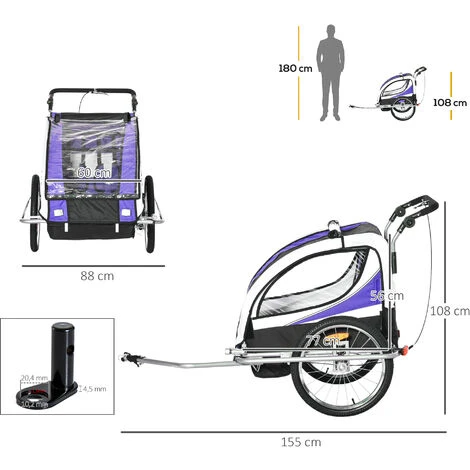 Bringen Sie Ihre Kinder immer sicher und wohlbehalten ans Ziel! Dieser großartige Fahrradanhänger bietet Platz für zwei Kleinkinder bis zu je 18 kg. Dank seines stabilen Rahmens, der Reflektoren und des Fähnchens erleben Ihre Kleinen immer eine besonders sichere Fahrt. Die schützende, aufrollbare Abdeckung und das Fliegennetz schützen zudem vor Niederschlag und lästigen Insekten. Ausgestattet mit einer praktischen Universalkupplung, kann der Anhänger mit nahezu jedem Fahrrad gekuppelt werden.