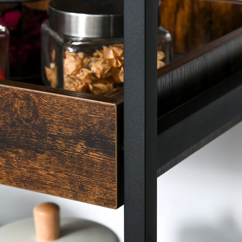 Die 3-stufigen Regale und eine breite Arbeitsplatte bieten Ihnen reichlich Stauraum für Ihre Küchen- und Essensutensilien. Halbgeschlossene Regale verhindern, dass Ihre Gegenstände herunterfallen.