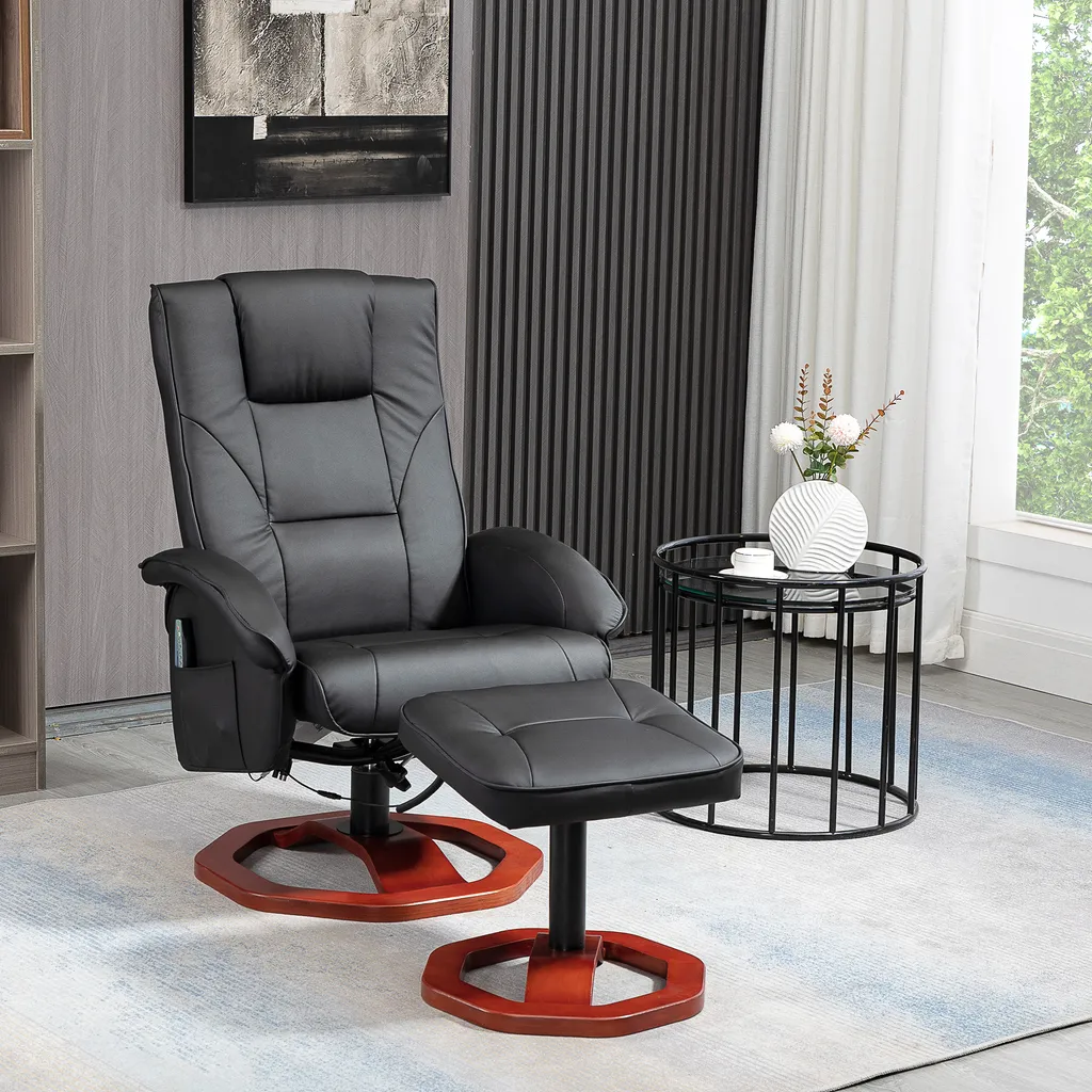 Dieser moderne Massagesessel ist mit seiner glatten Kunstlederoberfläche und dem runden Holzsockel wunderschön gestaltet, ohne den Komfort zu beeinträchtigen. Es ist ideal für eine angenehme Auszeit, egal ob Sie fernsehen, ein Buch lesen oder sich ausruhen.