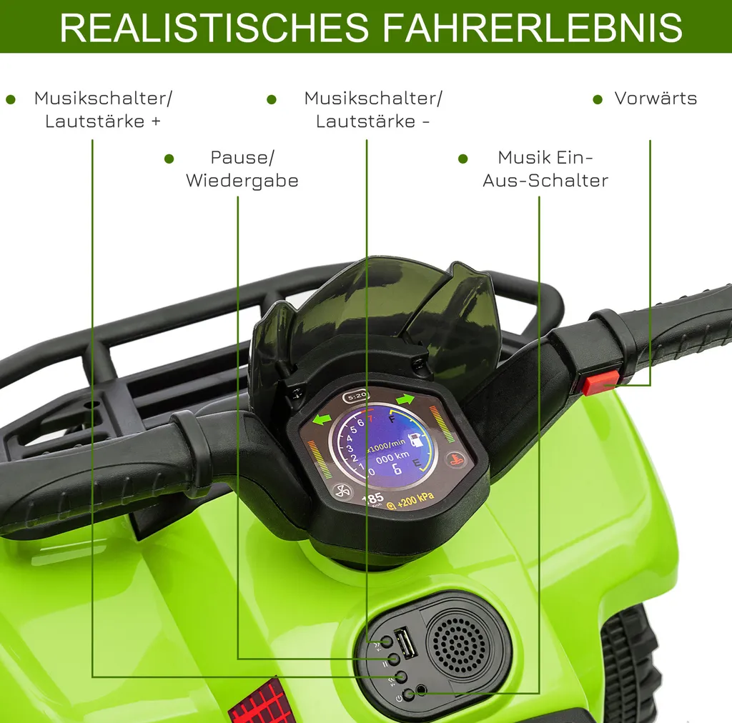 Viele Abenteuer erwarten ihre Kinder mit diesem Elektromotorrad von HOMCOM! Mit innovativer Form und einer schönen Farbgebung eignet es sich für Kinder von18-36 Monaten Kinder. Die 4 verschleißfesten Räder sorgen für eine reibungslose Fahrt auf dem elektrischen Motorrad und ermöglichen den Einsatz im flachen Gelände. Holen Sie sich dieses Elektromotorrad von HOMCOM nach Hause, um Ihre Kinder zu ermutigen, draußen zu spielen. Dieses Elektroauto von HOMCOM bietet jede Menge Fahrspaß!
