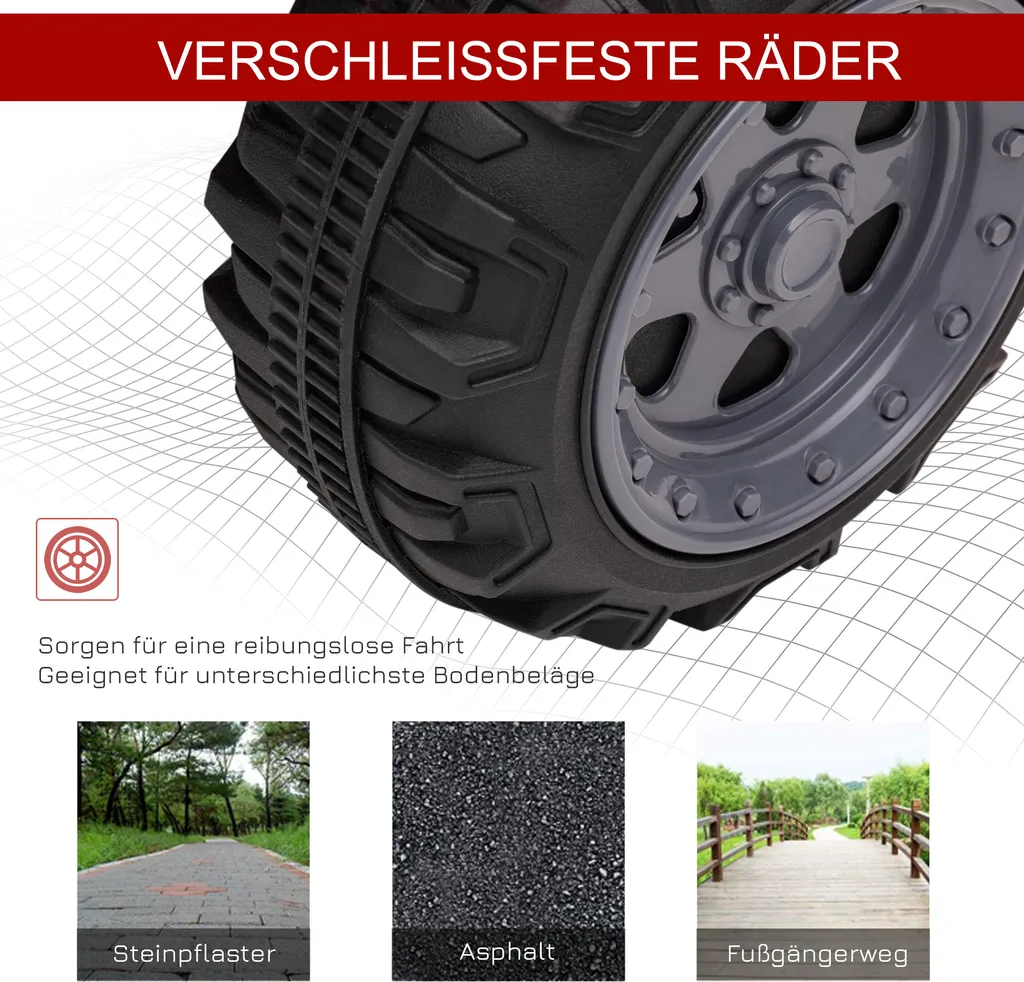 – Vier breite, strukturierte Reifen sorgen für Stabilität
