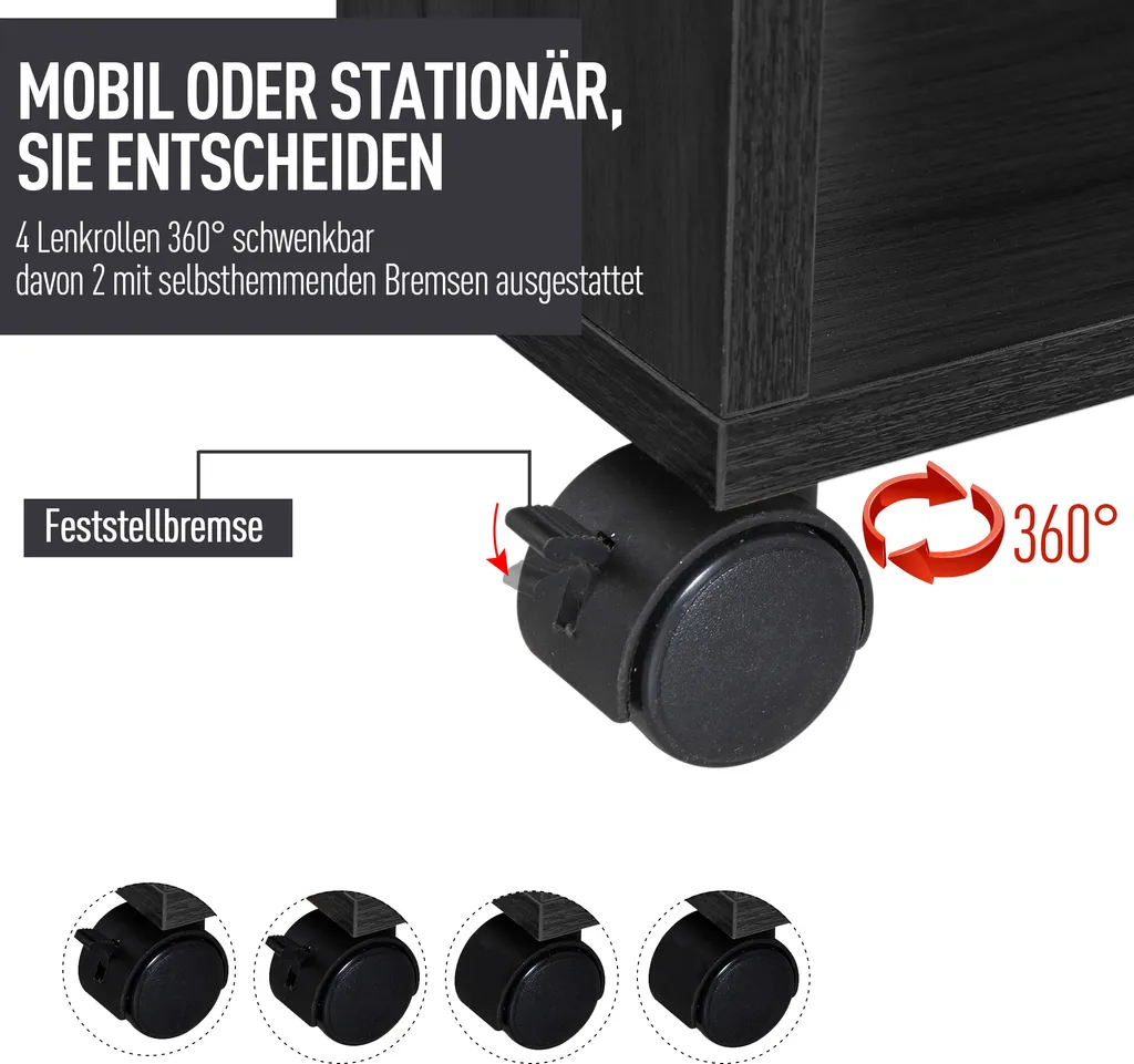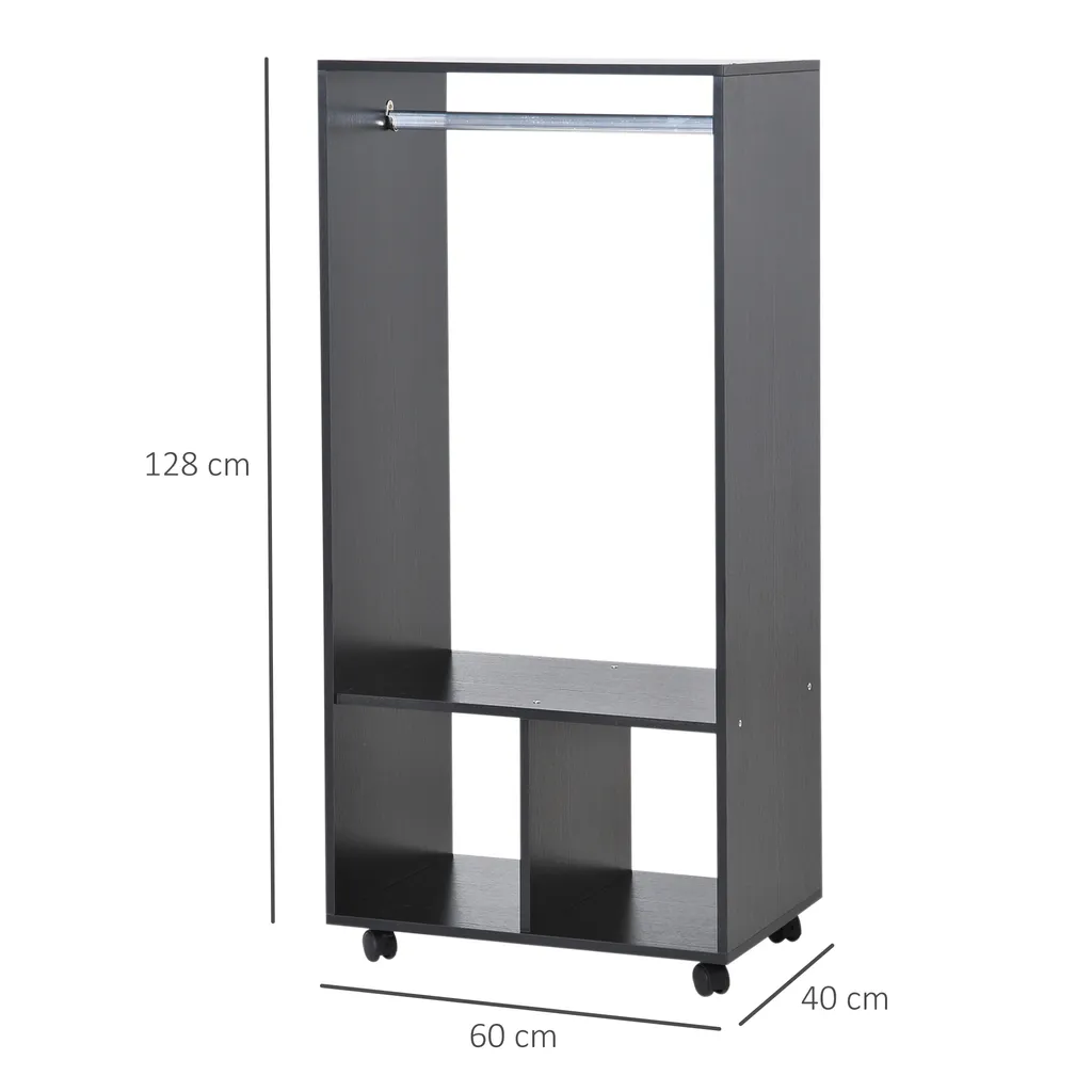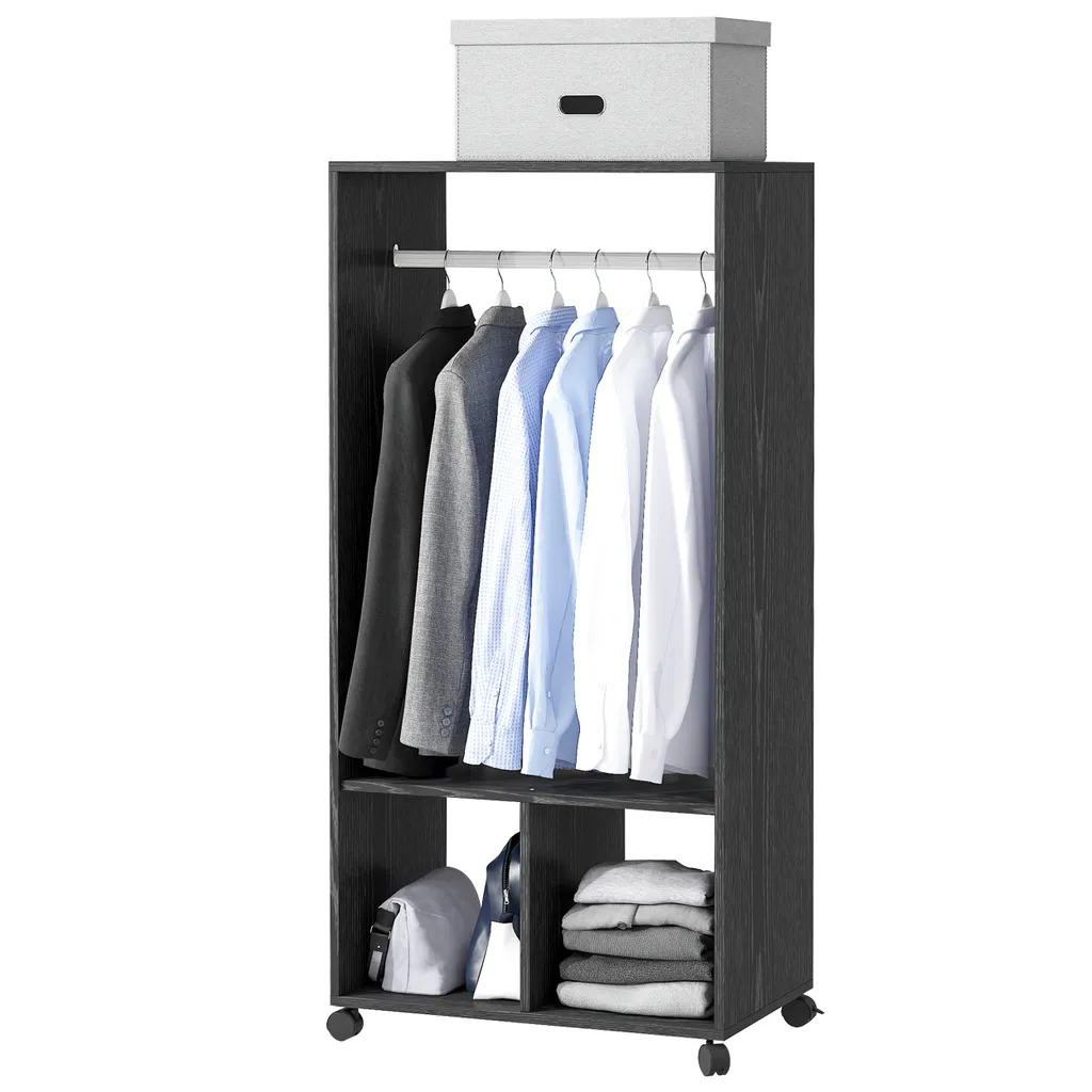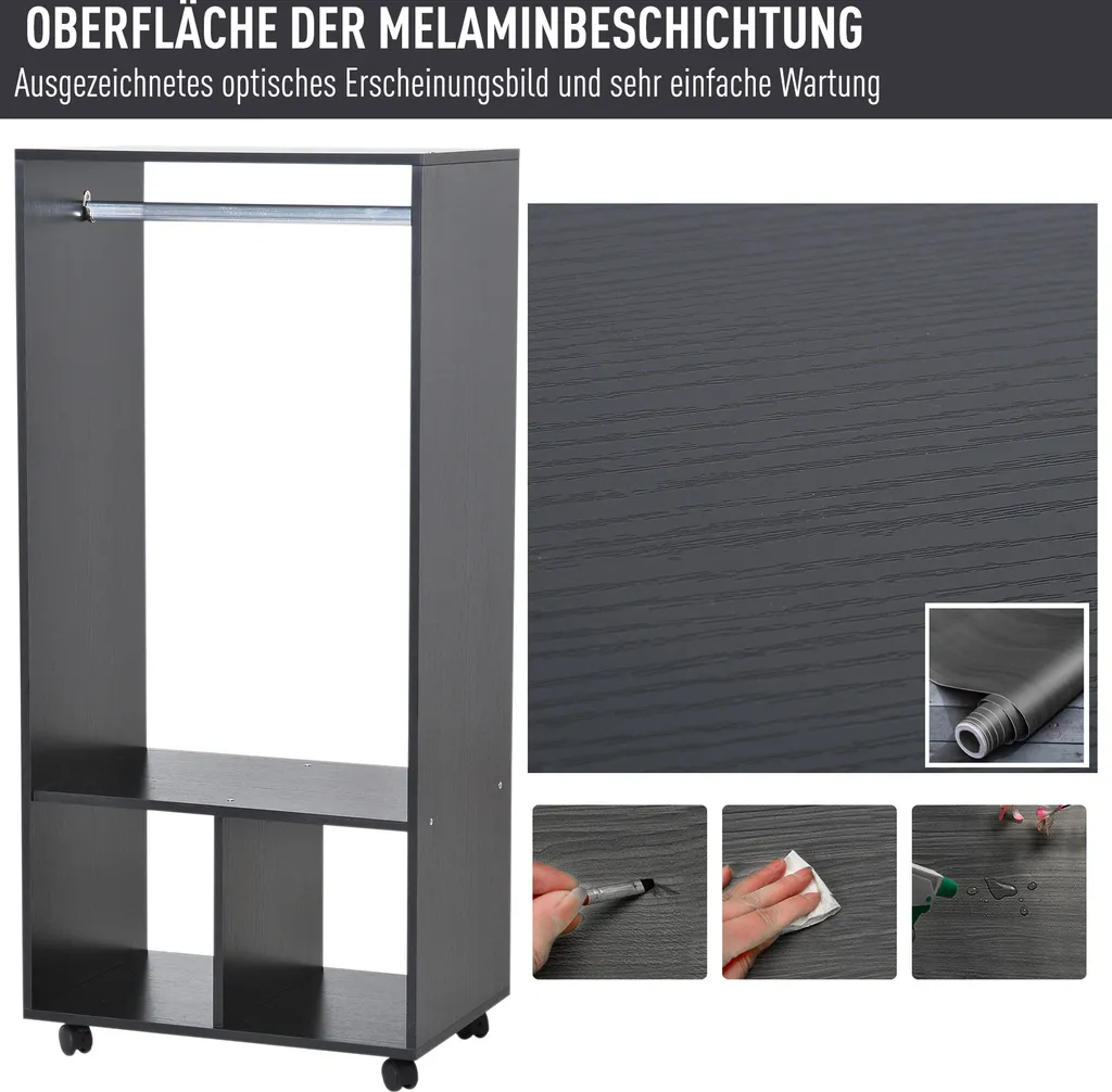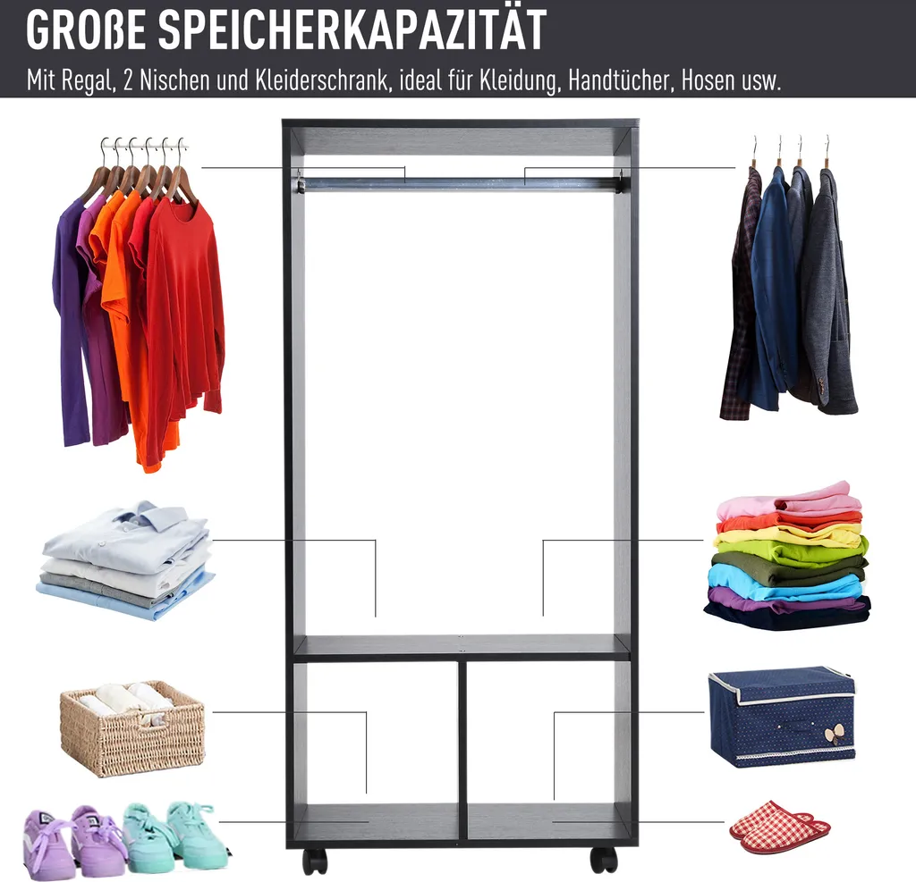 · Vier Räder, von denen zwei feststellbar sind, ermöglichen es Ihnen, Ihre Garderobe mit Leichtigkeit zu bewegen
