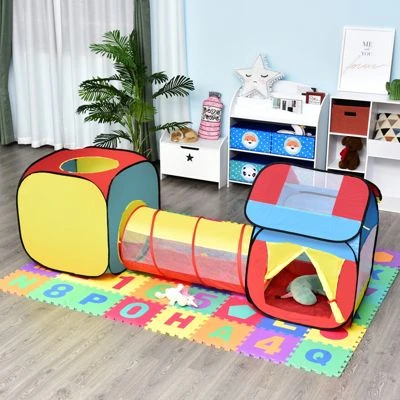 · 3 in 1 Set: 1 Tunnel mit 2 Zelten. Kann zusammen oder getrennt verwendet werden