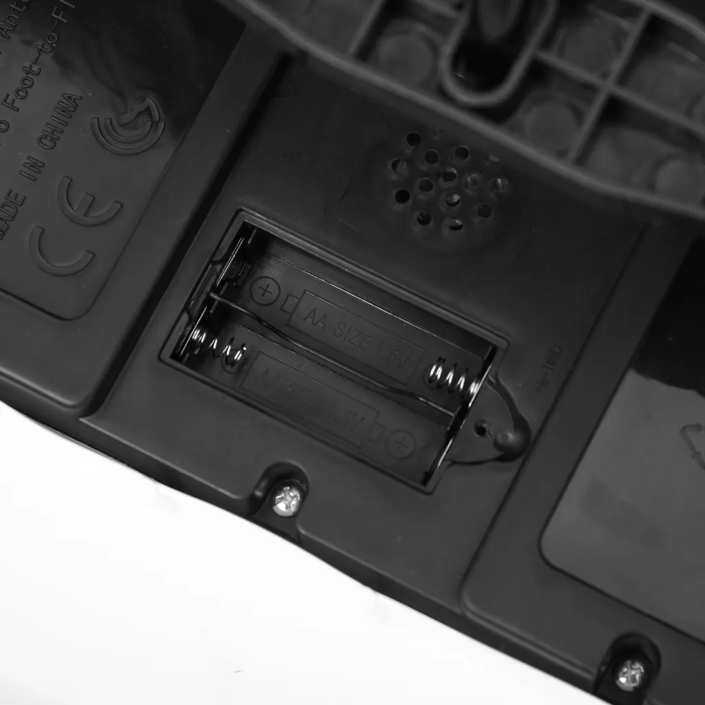 – Der Antrieb erfolgt nicht elektrisch, sondern durch das Schieben von zwei Beinen. Für dieses Schiebeauto werden 2 AA-Batterien benötigt
