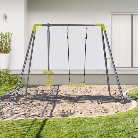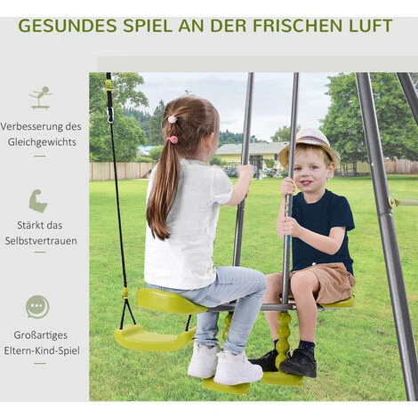Unser Schaukelset von HOMCOM für Kinder ab drei Jahren beschert stundenlangen aktiven Spaß an der frischen Luft. Sie können die Schaukel und die Wippe einfach an dem mitgelieferten Gestell befestigen und Ihre Kinder haben die Wahl zwischen zwei spannenden Aktivitäten. Schaukeln regt zur Bewegung an der frischen Luft an und fördert Gleichgewichtssinn, Koordination und Konzentrationsfähigkeit. Das robuste Schaukelgestell besitzt eine Tragfähigkeit von bis 100 kg. Bei diesem Schaukelset ist alles dabei, was Ihre Kinder für eine fröhliche Zeit brauchen!
