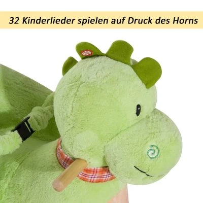 Drachen sind faszinierende Wesen. Unser niedlicher Schaukeldrache wartet nur auf einen treuen Begleiter, um in neue Abenteuer zu entschweben! Das Wippen auf unserem knuffigen Drachen macht nicht nur Spaß, sondern fördert parallel auch noch die Koordinationsfähigkeit und den Gleichgewichtssinn Ihres Kindes. Spielend lässt sich so trainieren. Die klappbaren Rollen sorgen für noch mehr Spielvergnügen. Die Sitzfläche ist gut gepolstert und mit angenehm kuscheligen Plüsch überzogen. Die abgerundeten Kufen sowie der Sicherheitsgurt gewährleisten ein sicheres Spielen. Unser furchtloser Schaukeldrache wartet nur auf Sie. Auf zu neuen Ufern!