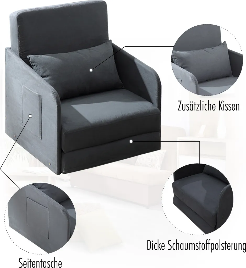 · Sekundenschneller Umbau vom Sessel zum Bett