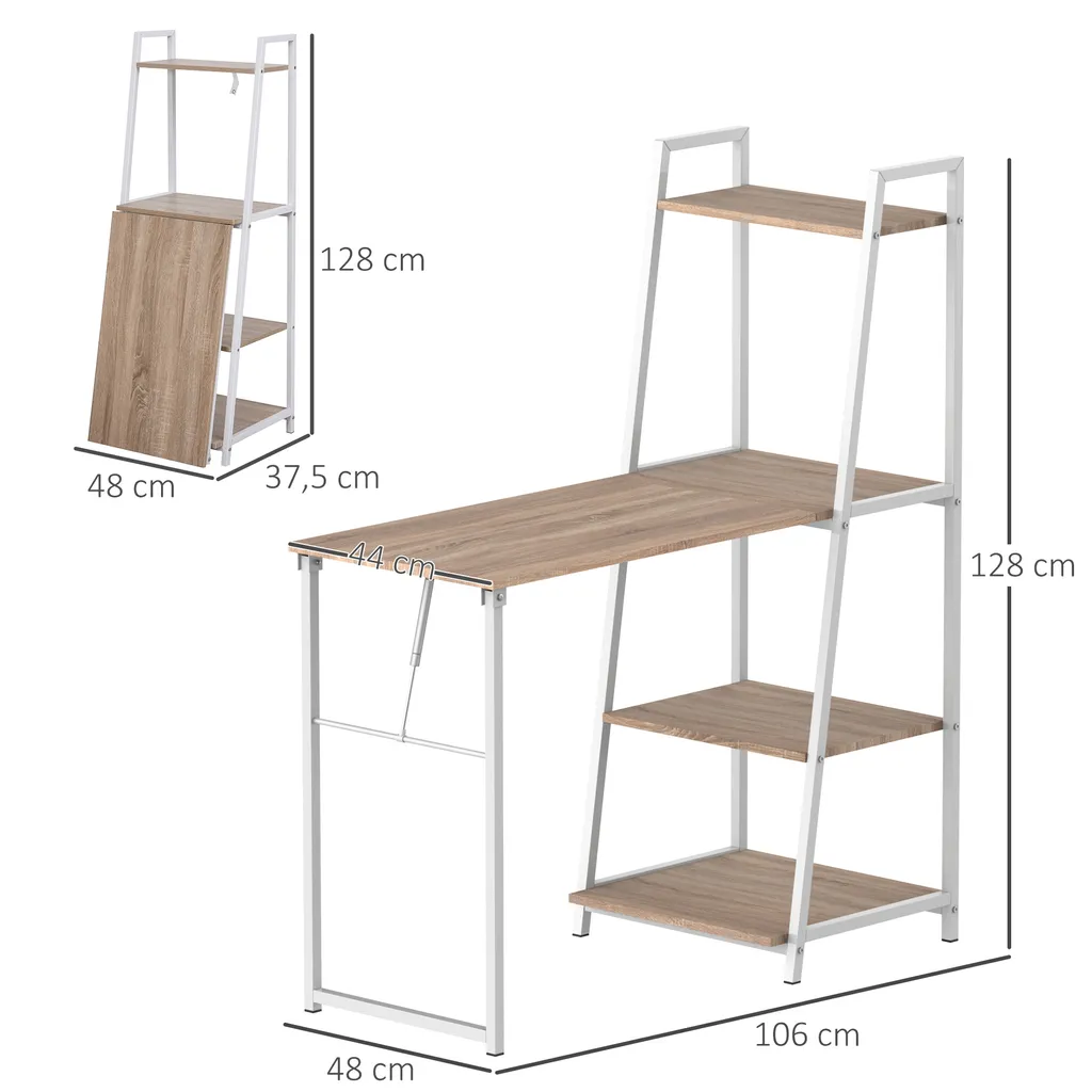 Gesamtmaße 106B x 48T x 128H cm; Belastbarkeit 20 kg (Schreibtisch), 5 kg (Regal)