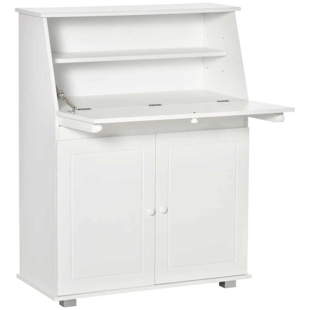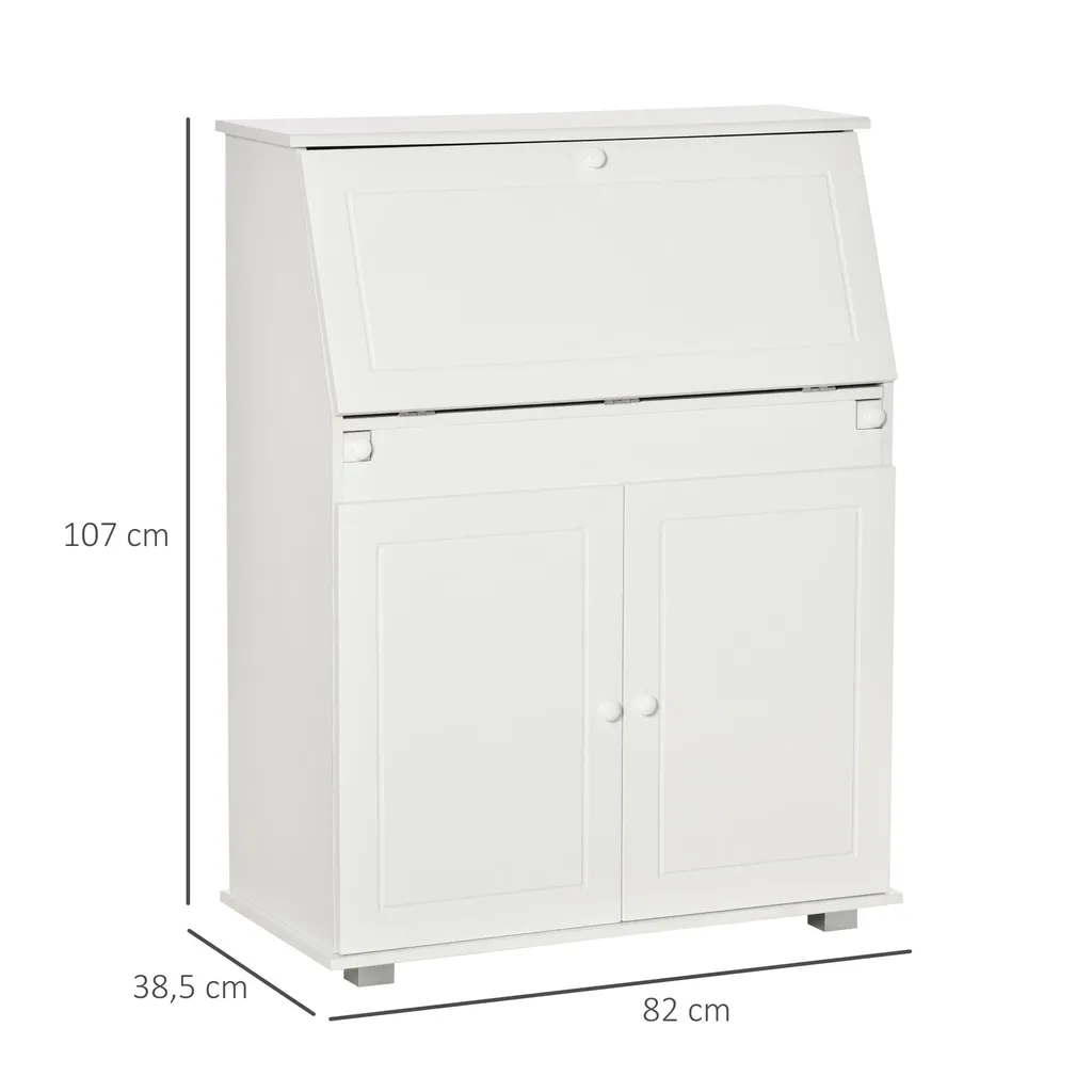 – In beiden Schränken gibt es 1 verstellbares Regal für Gegenstände unterschiedlicher Größe. – Klappen sie die Schreibtischplatte hoch, für mehr Ordnung