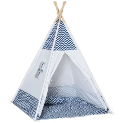 Dieses Tipi-Zelt von HOMCOM bietet Ihrem Kind und seinen Freunden einen geschützten Raum zum Spielen und Ausruhen. Gefertigt aus hochwertigem Segeltuch und durch robuste Stützen aus natürlichem Kiefernholz gehalten, schützt es Ihre Kinder vor Wind und Sonne. Der weiche Stoff, die mitgelieferte, isolierende Bodenmatte, sowie ein weiches Kissen sorgen für höchsten Komfort. Das Zelt kann sowohl in Innen- als auch in Außenbereichen genutzt werden und hilft Ihren Kindern, sich selbst zu beschäftigen.
