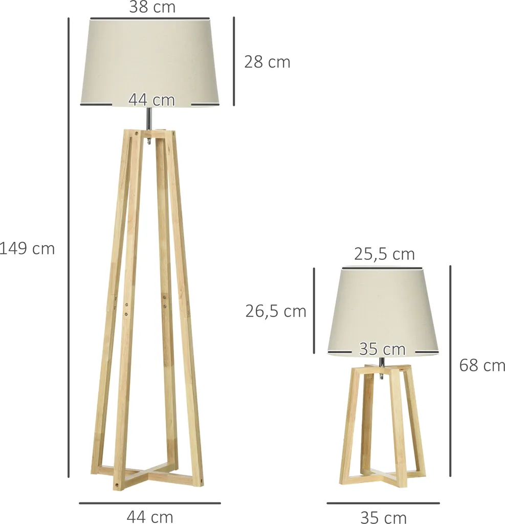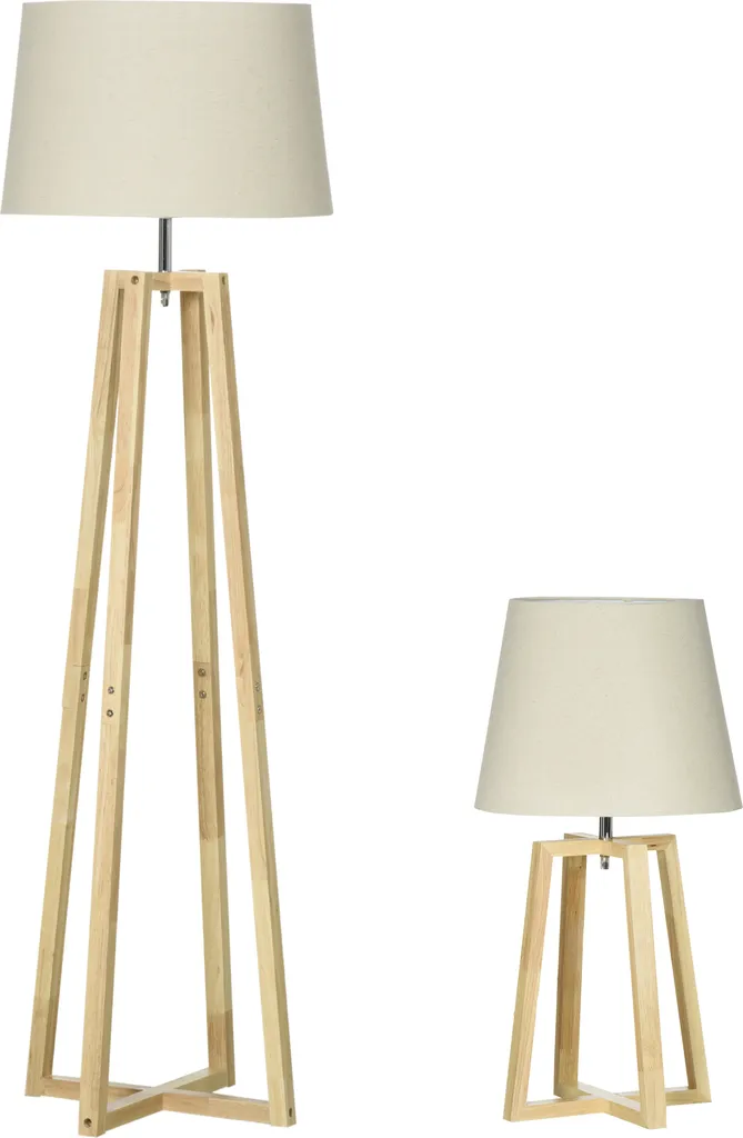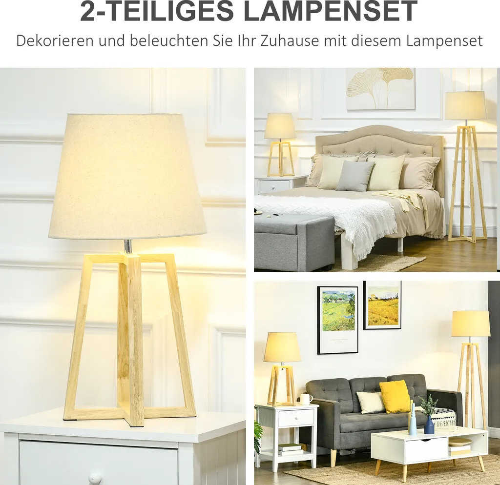 Verfügt über eine Stehlampe und eine Tischlampe, dieses 2-teilige Lampen-Set hat einen Lampenschirm in Leinenoptik und einen Lampenfuß aus Holz. Das moderne Design passt zu vielen Einrichtungsstilen.