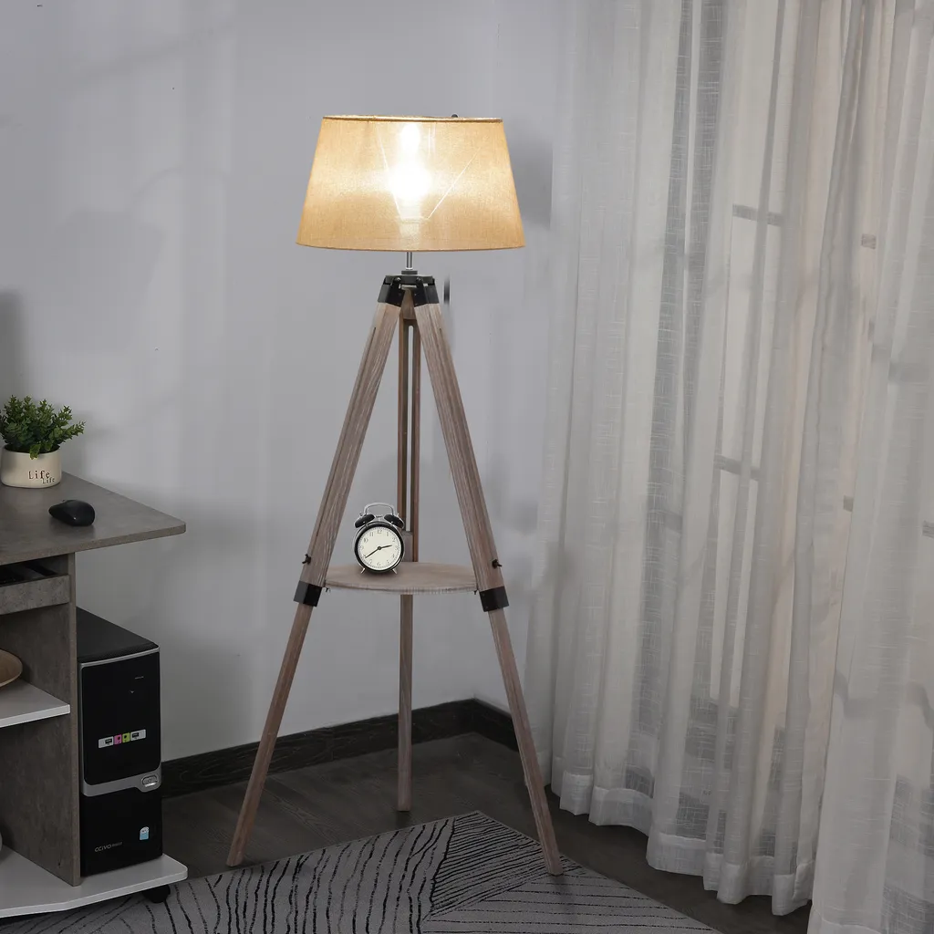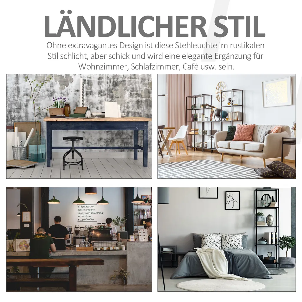 Die Stehlampe wird mit einem Regal kombiniert, in das Sie Ihr Telefon, Ornamente, kleine Pflanzen usw. stellen können. Ideal für Wohnungen, Büros, Bars, Clubs und Cafés