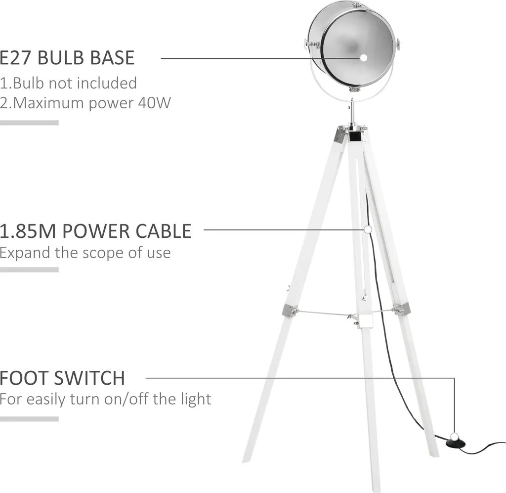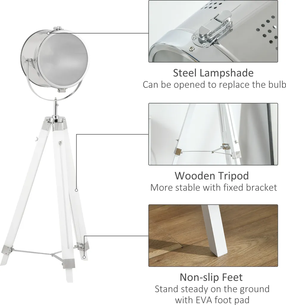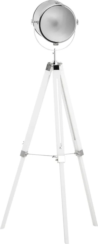 Die Tripod Stehleuchte kommt in einem trendigen Stativ-Design. Das dreibeinige Lampengestell besteht aus solidem Kiefernholz Der Lampenschirm aus Stahl ist pflegeleicht und langlebig.