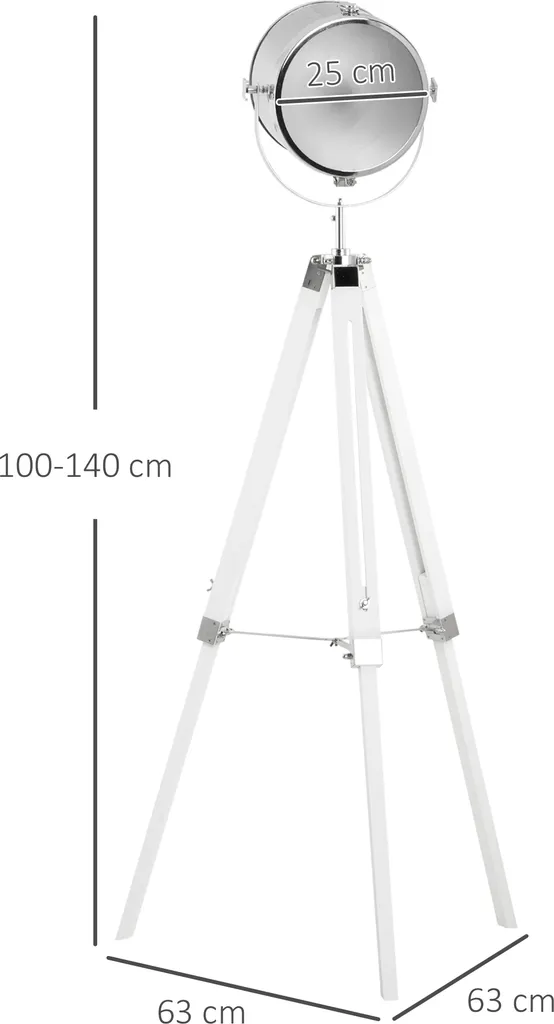 Gesamtmaße: 63L x 63B x 100-140Hcm; Größe des Lampenschirms: Ø25 x 19,5Hcm; E27 Glühbirnensockel (Glühbirne nicht enthalten); Glühbirnenleistung: 40W