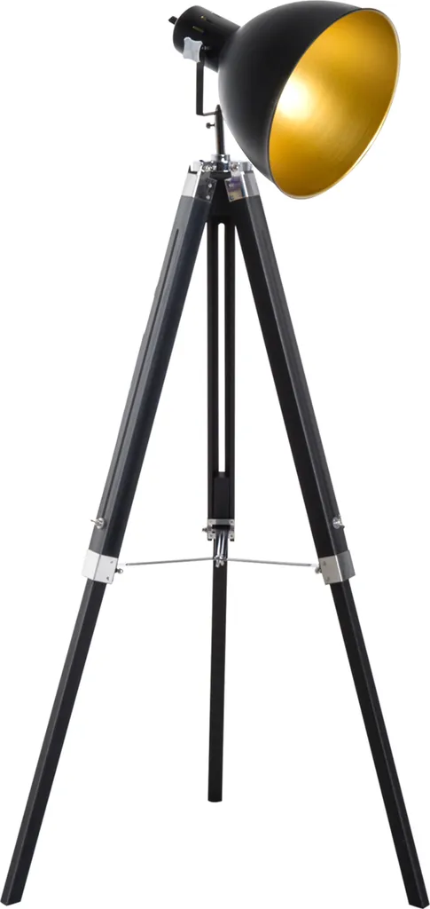 Simple, klare Formen, schlichtes Schwarz und gedimmtes Gold definieren die Standleuchte. Das unverkennbare Industrial Design ist ein absoluter Blickfang, egal ob in Ihrem Wohnzimmer, Schlafzimmer oder Esszimmer.