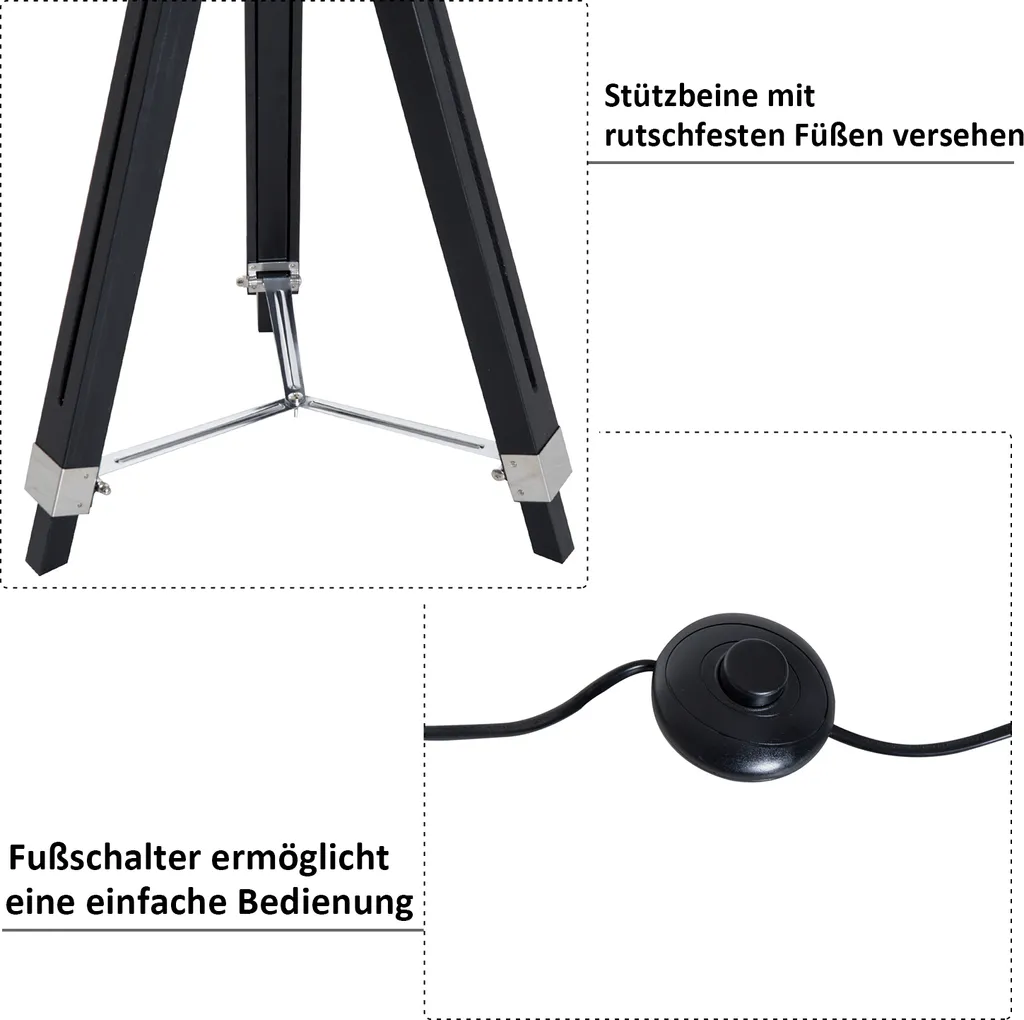 Drei schwarz lackierte Stützbeine aus Kiefernholz tragen den Lampenschirm sicher. Die Füße sind gummiert, für beste Standsicherheit.