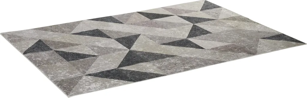Dieser Teppich kommt in einem Trenddesign aus geometrischen Formen mit grauen und schwarzen Farben. Er ist ein Design-Highlight für jeden Raum.