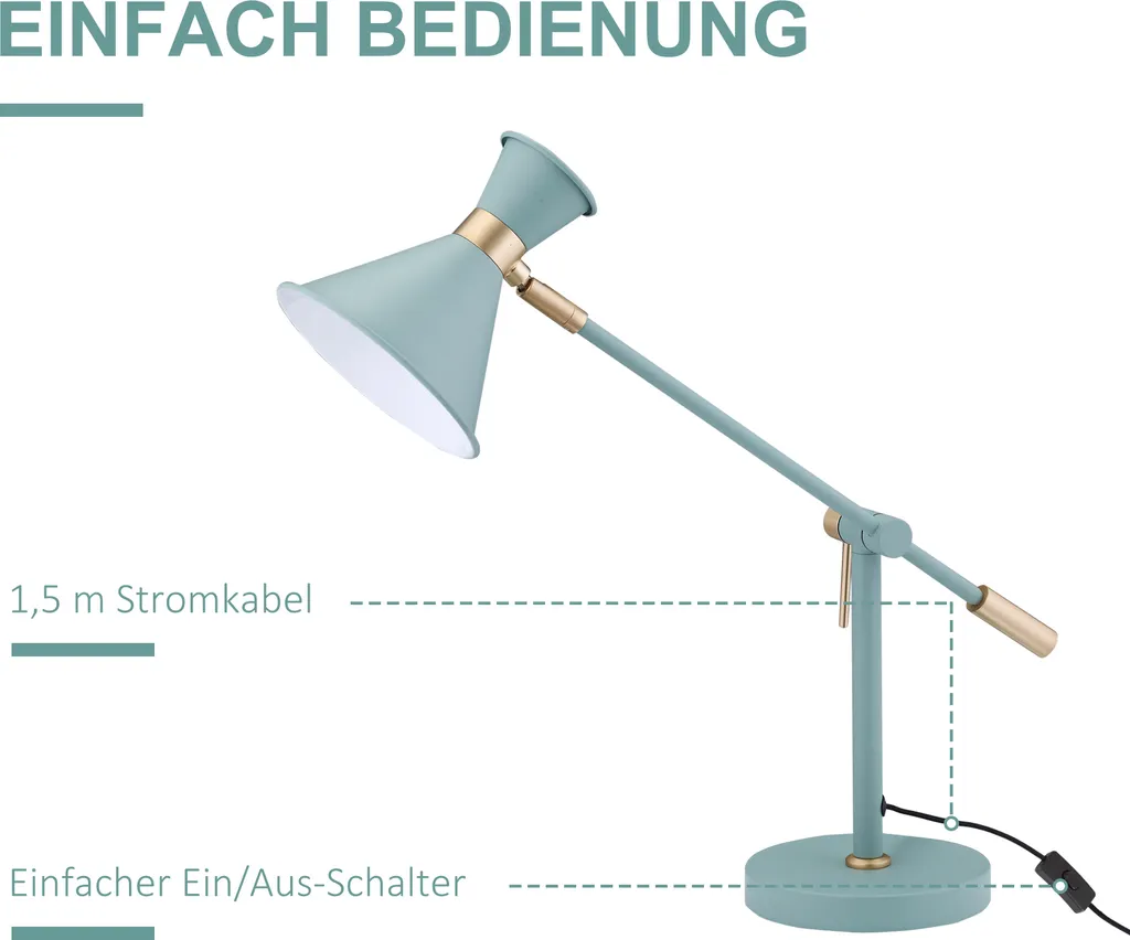 Hält eine E27 40W Glühbirne (nicht im Lieferumfang enthalten); Ein/Aus-Schalter ist auf dem Stromkabel platziert, um einfach zu bedienen. Ausgestattet mit einem 1,5 m langen Stromkabel für bequemen Zugang zum Stecker