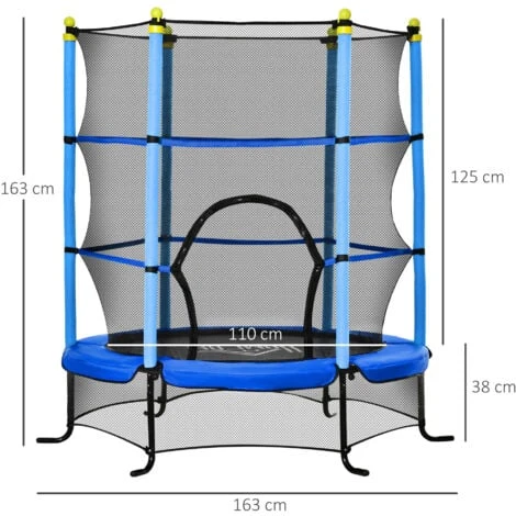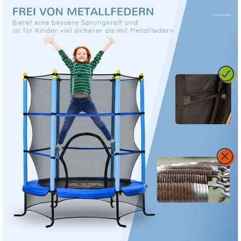 Großer Sprungspaß – besonders sicher: Dieses Trampolin für Kinder von HOMCOM ist rostfrei, erfüllt die höchsten Sicherheitsanforderungen und steht für uneingeschränktes Sprungvergnügen! Das hochwertige Sicherheitsnetz, die gepolsterten Pfosten und die verlängerte Randabdeckung sorgen für ein weiches Fallen und minimieren das Verletzungsrisiko. Lassen Sie Ihre Kinder spielerisch den Gleichgewichtssinn, die Koordination und Muskelkraft trainieren – egal ob zu Hause oder im Freien!
