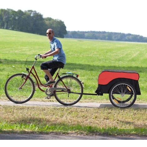 Mit dem Fahrrad lässt sich sehr wohl viel transportieren. Mit dem Lastenanhänger von HOMCOM sogar sehr einfach. Die Universal-Anhängerkupplung passt an fast jedes Fahrrad und ist schnell an- und wieder abmontiert. Der robuste Stahlrahmen lässt eine Beladung von bis zu 40 kg zu. Mit den 20-Zoll-Reifen ist sich der Anhänger auch vollbeladen noch leicht zu ziehen und die Felgenreflektoren sorgen für eine bessere Sichtbarkeit.