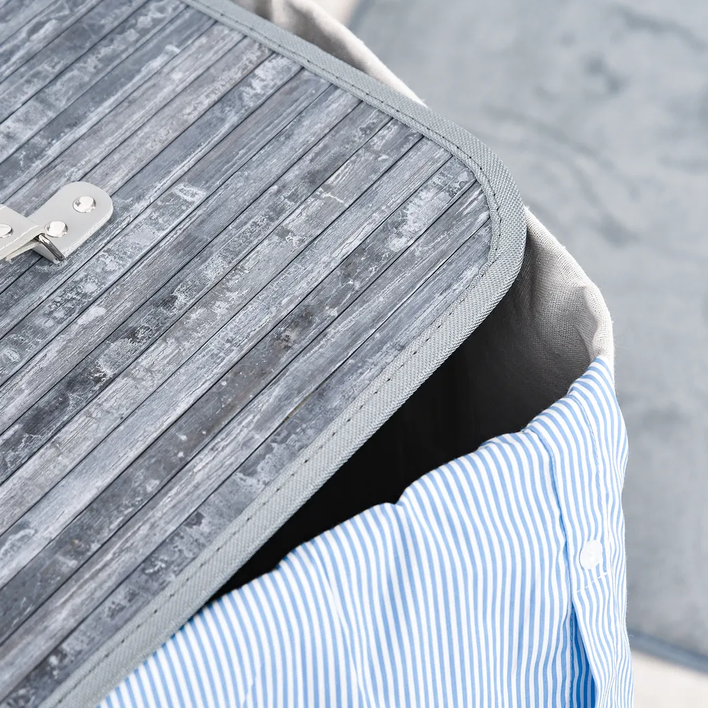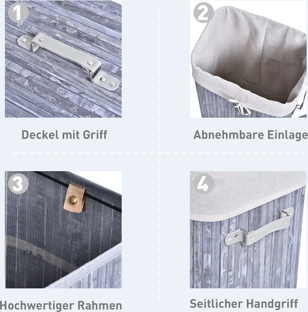 · Material: Bambus, Wäschesack aus Segeltuch, Griffe aus PU