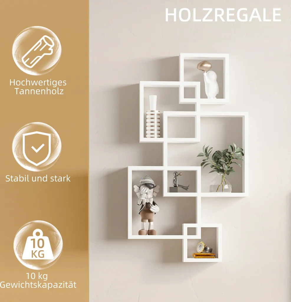 – Modernes Designregal aus fünf ineinandergreifenden Würfeln, die 9 Ablagefächer bilden;