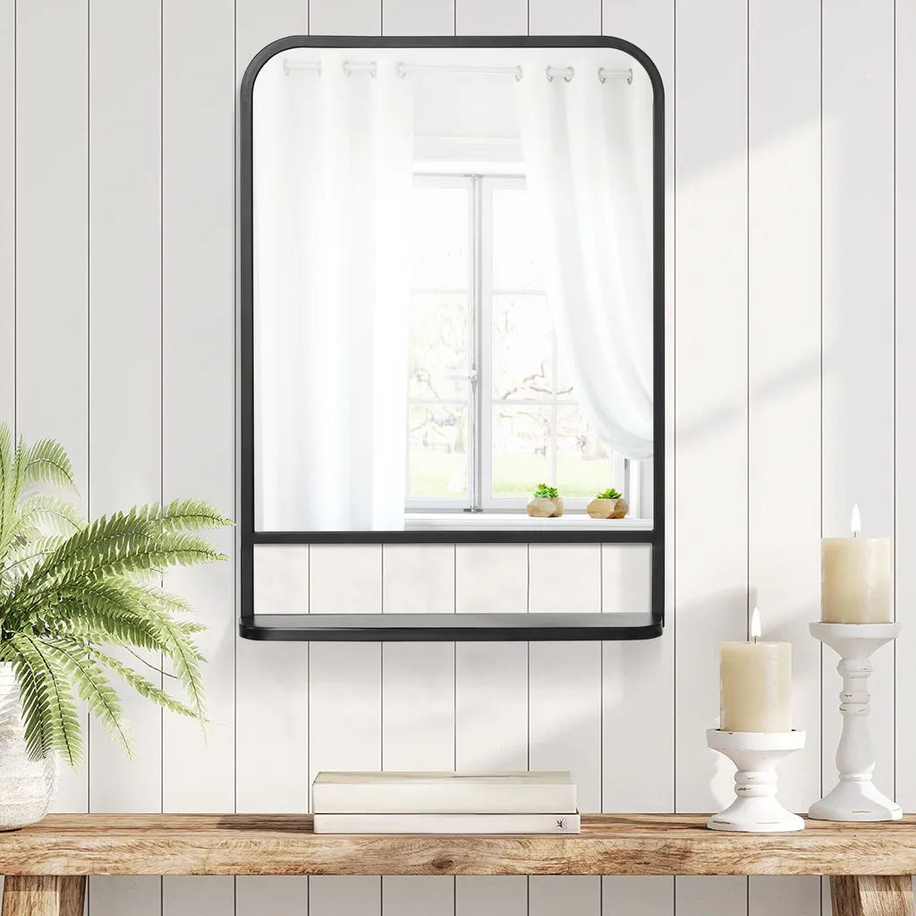 Mit eingebauten Haken kann er flexibel als Wandspiegel verwendet werden. Die untere Ablagefläche dient dazu, den Platz effektiv zu nutzen und den Raum ordentlich zu halten.