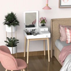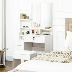 HOMCOM Schminktisch Kosmetiktisch Mit LED Spiegel Schublade 3 Ablagefächern Weiß 70 X 40 X 160 Cm
