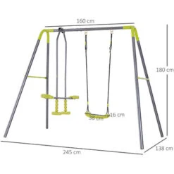 HOMCOM Schaukelset Mit Wippe Und Schaukel Metall+PE Schwarz+Hellgrün 160/245 X 138 X 180 Cm